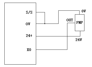 A:把PNP型三線制接近開關的信號輸出端接PLC的輸入口如X0,PNP型接近開關的0V端接到PLC上的0V端子,還要把S/S端子跟0V端子短接起來,PNP型接近開關的+24V端接到PLC上的24+端子。如果是外接24V電源的話,那么把PNP型三線制接近開關的信號輸出端接PLC的輸入口如X0,PNP型接近開關的0V端接到外接24V電源的負,還要把S/S端子跟外接24V電源的負短接起來,PNP型接近開關的+24V端接到外接24V電源的正。