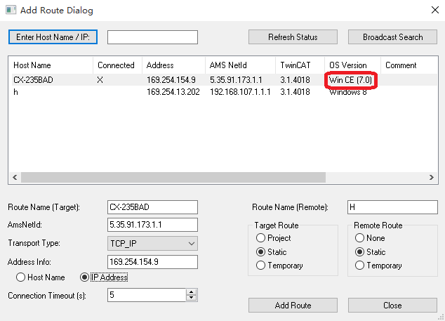 選中目標機器:(確定PC的IP地址網段與控制器保持一致)
