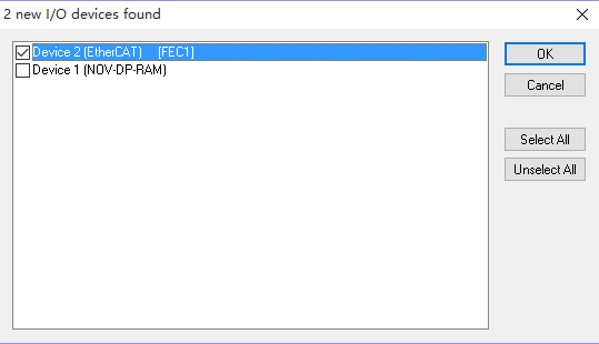在彈出的窗體中勾選(EtherCAT),點擊OK,