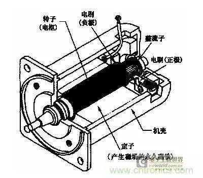供電方式:他勵。勵磁繞組和電樞由兩個獨立電源供電: