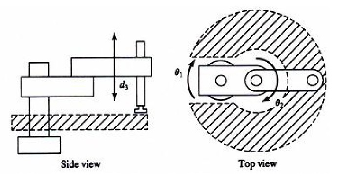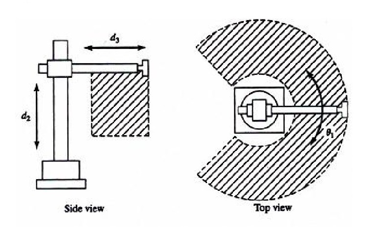 缺點:它的手臂可以到達的空間受到限制,不能到達近立柱或近地面的空間;