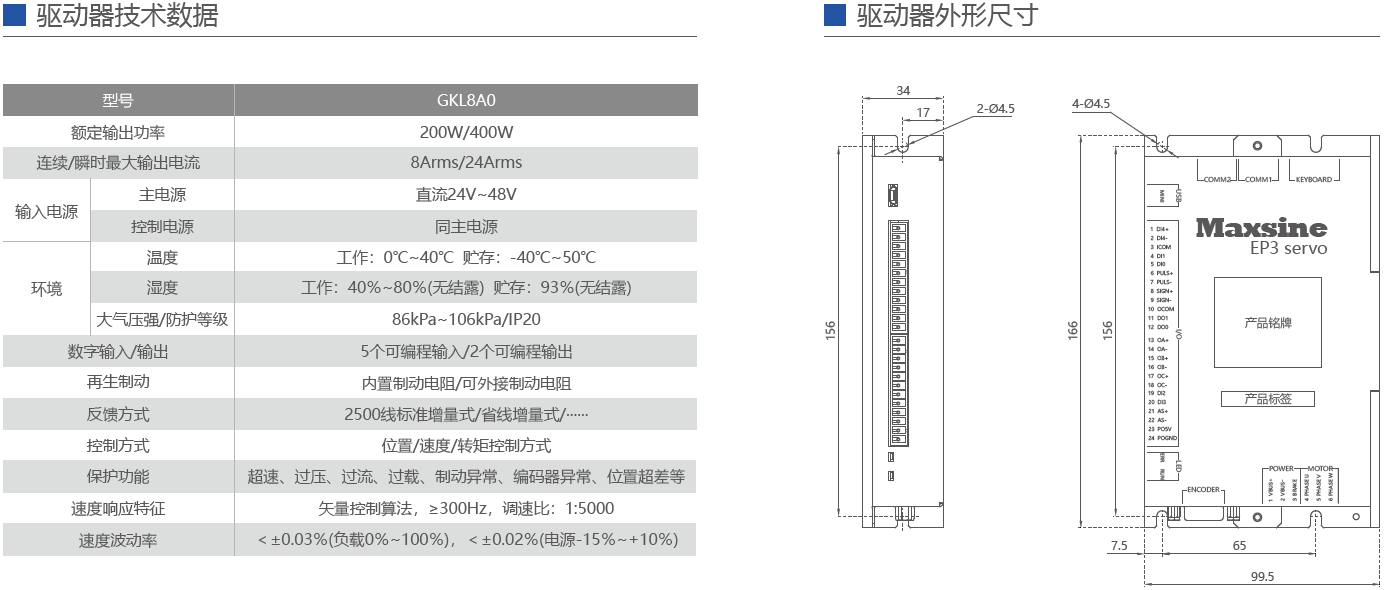 ● 電壓:DC 24V~80V ● 功率:200W~1000W ● 控制方式:位置、速度、轉矩 ● 接口:脈沖、EtherCAT ● 支持禹衡、多摩川、尼康等23bit增量式/絕對式編碼器 ● 調試接口:USB實現參數讀寫,調試錄波等功能 ● 應用行業:AGV、協作機器人等